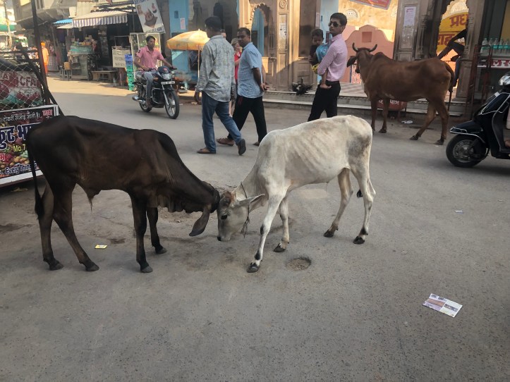 Bhí na mílte radhairc le feiceáil ó na traenacha agus busanna: páistí ag imirt cruicéad le hadhmad garbh, aoire le cúpla céad gabhar, mná gléasta sna héadaí traidisúnta a bhí lán le dathanna áille, daoine ag úsáid na sceacha mar leithreas, feirmeoirí ag síleadh plandaí agus barra, daoine ar dhroim chamaill agus eilifintí, ba (cows) i lár na bóithre, moncaithe ag déanamh iarrachta bia a ghoideadh, siopadóirí ag díol éadaí ildaite agus bia de gach saghas, tithe a bhí ina mbotháin agus tithe a bhíodh ina bpáláis tráth. Bhí ionadh agus iontas orainn gach lá a chaitheamar san India leis an méid a bhí le feiceáil ann.