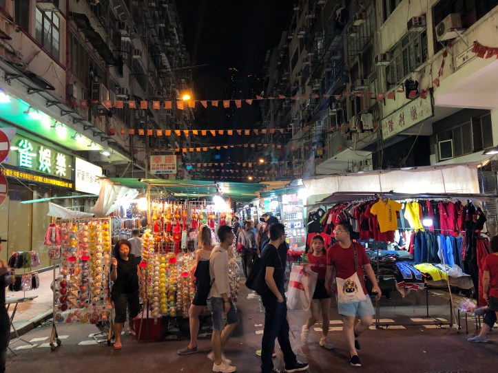 Tá margadh oíche Temple St lonnaithe i lár Hong Cong agus tá gach saghas earra ar díol ann. Tá na praghasanna an-íseal ar fad agus is féidir roinnt margála (bargaining) a dhéanamh le na siopadóirí (shopkeepers) ann freisin!